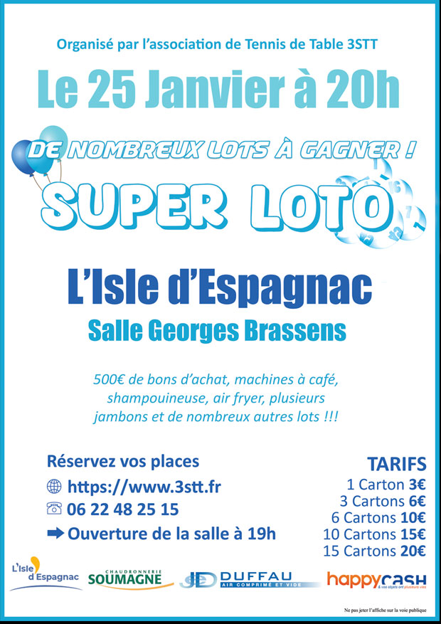Projet de logos vintage pour le club de tennis de table de l'Isle d'Espagnac 3STT.Création d'une Affiche pour le super loto organisé par le club.